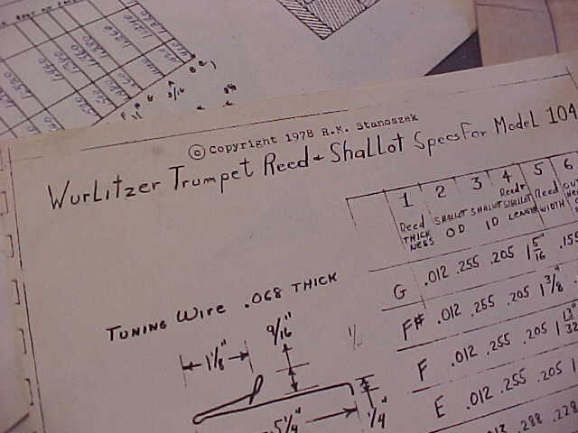 Reed and shallot info for Wurlitzer 104 trumpets